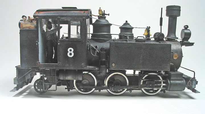 As many GAZETTE readers know, I like to kit bash On30 locomotives. The On30 Bachmann Mogul makes this fairly easy. These Moguls have a smooth running and reliable mechanism, and are made of plastic, so are easy to modify. When I saw the photo shown here of Al Judy’s #6, I decided to build a version of this chunky wood-burning locomotive for my layout. I had a spare Mogul, and I found that Scott Maze and Calvin Witt, who call themselves the “KitBash Brothers,” have 3D parts for a cab/fuel bunker, two rectangular water tanks, and a frame extension/end beam that extends the Mogul’s frame allowing room for the new cab and trailing truck. You can contact the Brothers at KitBash Brothers on Facebook, and see construction tips at KitBash Brothers/files/bash#3. Here are some tips on how I bashed my 2-6-2T using KitBash Brothers 3D parts/.
