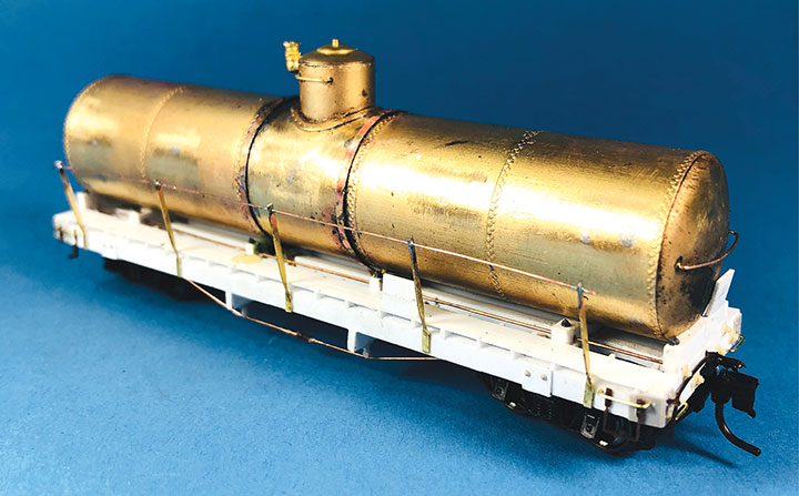 I’ve always been interested in the oddball equipment that the narrow gauge railways collected and I enjoy the challenge of trying to replicate these cars in miniature. When I saw Robert (Bob) Stears’ plans in the November/December 2020 GAZETTE for Conoco tank car number 14, I knew this was a prototype that I wanted to model. A few years before his passing, Jim Vail had given me a box of brass tank car bodies that Dick Truesdale of Westside Models had given him. Since then, I had been looking or a suitable project for these tanks, and here it was. With Bob Stears’ plan in hand, I compared the brass tanks to the drawing. Unfortunately, none were even close to the dimensions of CONX 14. I thought that the project was over until I noticed that the plan listed the tank sizes for CONX 12 and 13. All three cars shared the same frame, but the tanks were all different. In that box of tank bodies, I found a perfect match for number 13 and a very close match for number 12. My project was back on track! I switched directions and decided to build 12 and 13 and leave CONX 14 for another day.