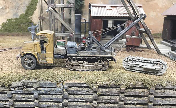During many summers in my youth, I worked for Rice Mill Wright Service to make money for school. The company did mostly on the spot repairs or replacement of machinery for cattle feed lots, flour mills, and large ranches. One such place was DM&H Cattle in Henderson, Colorado, 35 miles north of Denver, where there were two surplus Army halftracks. One had a small crane on the rear section of the chassis over the tracks. The image of this vehicle stuck with me until I finally had to make one for my On30 layout. I found some track bogie castings in my parts drawer, along with a Match Box Mac C cab truck. With the addition of a Berkshire Valley winch kit, my halftrack came to life.