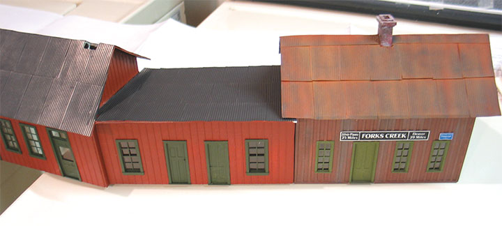 This is another project inspired by Harry Brunk’s GAZETTE series, “Up Clear Creek on the Narrow Gauge.” Harry often wrote about the Forks Creek area during the series, and I was interested enough to build the Classic Miniatures kit of the station. I put the finished station on the unfinished Forks Creek wye section of my layout and moved on to other projects.