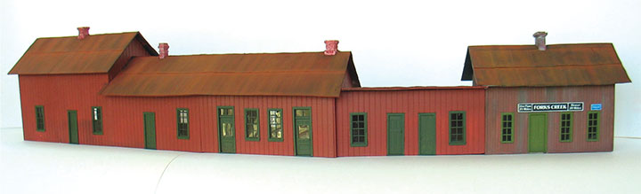 Much later in the series, he wrote about the New Forks Creek Eating House, and this caught my attention. I really liked the way the buildings were joined to the station and were built in a curve to follow around the curved track. The article was Part 61 in the series and appeared in the March/April 1990 GAZETTE.