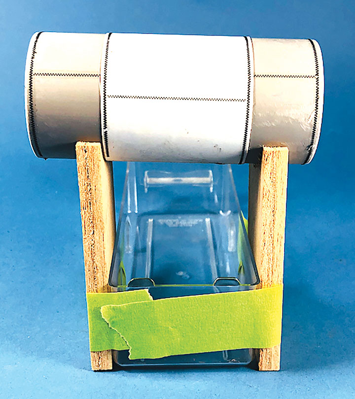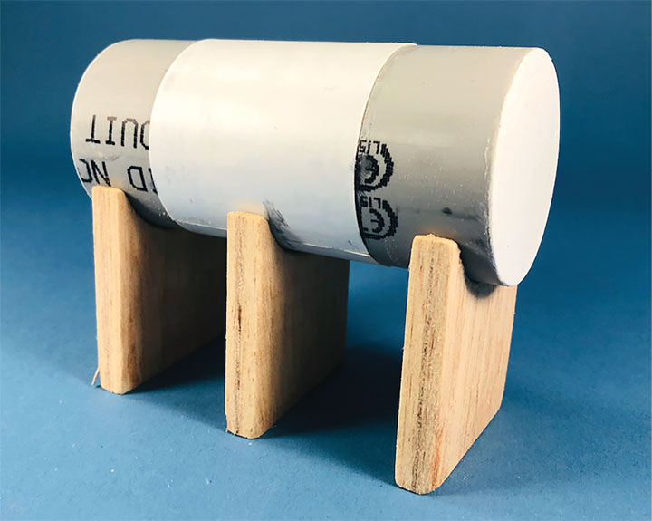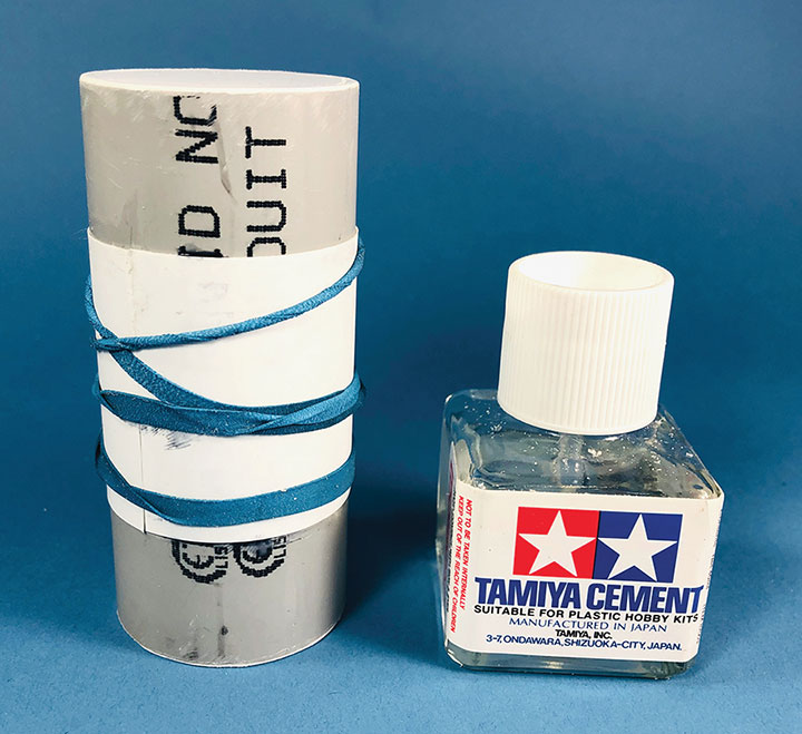 I built the entire petroleum spur at my workbench, including the scenery. This diorama replaced an existing spur on my layout and was blended into the basic scenery. With the Conoco distributor in place, I now have a destination for my San Juan Models tank cars. The Texaco dealership provides me with a destination for my CYCX numbered narrow frame tanks as well as my double dome TCX tanks. The people of Placerville and the adjoining Paradox Valley will be well served for their petroleum needs.Initially I tried making the tanks using a styrene sheet wrapped around styrene disks, but all I managed to accomplish was to create a badly dented tank that looked like it was being crushed in a junk yard. That failure sent me back to the drawing board. After some thought, I took a trip to the local home improvement store and bought a length of 1¼-inch diameter plastic conduit. The outer diameter worked out almost perfectly to the 12 feet indicated on the Mike Blazek drawings (www.blazekplan.com) that I was using as a guide. I cut five pieces of conduit to 27 scale feet in length, then capped the ends with .020-inch styrene. I used Tamiya cement which seemed to work just fine with the plastic that the conduit was made from. The caps were trimmed to size and filed to create a smooth union. This photo illustrates the steps involved.Most prototype tanks constructed in the early 1900s were made by riveting a number of rolled steel sheets together. To simulate the center section of sheets I wrapped a 13½-scale-foot wide piece of .010-inch styrene around the tanks. More Tamiya glue and rubber bands held the styrene in place.The three Texaco tanks sat on top of poured concrete saddles. I used 5/16-inch plywood to simulate these saddles. The first step was to cut the plywood into strips that were a scale 12-feet wide. I then drilled 1 5/8-inch holes about three real inches apart. Then I cut through the middle of each hole creating a bunch of blocks of wood with a half a circle cut out of each end. These were then used to create saddles ten scale feet in height. When I was done, I had a pile of concrete saddle forms. I selected the best-looking ones and grouped them in sets of three saddles for each of the three Texaco tanks. The wood was then sanded smooth, and I ended up with basic forms that were used to simulate the real concrete saddles.The three sets of Texaco tank saddles were painted a base coat of Floquil Concrete. To create texture and make the wood blocks look more like concrete, I rubbed on three shades of gray Pan Pastels that ranged from an almost white tone to a medium gray. I then used an earth-colored Pan Pastel and various rust colors to add streaks to the concrete saddles. When I was satisfied with the look, I sprayed them with Testors Dullcote.With the Texaco tank saddles sorted out, I focused on finishing the tanks. I felt they needed more detail, so I used Archer textured rivets decals (AR 88098 & AR 88031) to simulate the seams in the tank pieces. I also added a row on the tank ends to simulate two pieces of metal making up the ends. These rivet decals were tricky to apply to a cylinder until I used some left-over tank saddles taped to a plastic box as a cradle. This setup made it much easier to apply the decals.I made the Texaco and Conoco tanks identical. There is one photo in the RGS Story Vol. 1 (Sundance Publications) that shows the Conoco tanks in the background, and they appear to be about the same size as the Texaco tanks. This made construction a lot easier. With all the Archer decals applied, I had all five tanks ready for paint. I ended up painting them Floquil Reefer White shortly after this photo was taken.In the RGS Story Vol. 1, if you look closely at the photos of the left-over tank bases for the Conoco facility, you’ll see tapered concrete pedestals. To create these pedestals, I used my table saw to cut basswood 3-scale-feet square. I cut this wood into 10-scale-foot lengths. Placing a 2-foot-square mask over the end of each pedestal blank, I traced a 6-scale-inch outline on the perimeter of the end of the wood blocks. Using a belt sander clamped in my workbench vice, I sanded the four sides to a taper using the 6-inch mask as my guide for making one end 2-feet square while leaving the other end 3-feet square. When I finished making these pedestal blanks, I painted and weathered them using the same technique as I did for the Texaco tank saddles.The prototype photos only show the Conoco concrete tank pedestals but don’t show any details of what the tanks sat on. Since there is no sign of steel bracing in the photos, I felt that there was probably some sort of wooden frame between the pedestals and the tank. Using 8- x 16-inch scale lumber, I created large cradles like what you’d see on a Conoco tank car. These cradles were stained with Hunterline Driftwood and Medium Brown stain. On the prototype, the cradles would have needed to be fastened to the pedestals. To simulate that, I made metal plates using 1- x 10-inch styrene with Grandt Line #5123 NBW castings to make it appear like the cradles are lag bolted to the tops of the concrete pedestals. I weathered these cradles with rust colored Pan Pastels.With the basic structures built, I wanted to see how they would fit on the existing Old Placerville vspur on my layout. I didn’t bother with the tanks, but set the other structures in place while leaving room for the tanks. I wanted to get a sense for how everything would fit into the scene, verify the elevations, and see if I could utilize the existing spur trackage. It was apparent that space was going to be tight, and the spur would need to be moved to make room for all the buildings.With the general position of where the petroleum distributors would fit into my Old Placerville scene decided, I did one more re-check of the scene with the buildings in place. I also used pieces of flextrack to determine where the spur would be aligned. Once the buildings were in