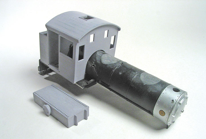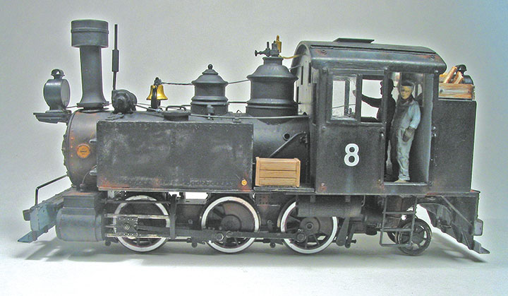 As many GAZETTE readers know, I like to kit bash On30 locomotives. The On30 Bachmann Mogul makes this fairly easy. These Moguls have a smooth running and reliable mechanism, and are made of plastic, so are easy to modify. When I saw the photo shown here of Al Judy’s #6, I decided to build a version of this chunky wood-burning locomotive for my layout. I had a spare Mogul, and I found that Scott Maze and Calvin Witt, who call themselves the “KitBash Brothers,” have 3D parts for a cab/fuel bunker, two rectangular water tanks, and a frame extension/end beam that extends the Mogul’s frame allowing room for the new cab and trailing truck. You can contact the Brothers at KitBash Brothers on Facebook, and see construction tips at KitBash Brothers/files/bash#3. Here are some tips on how I bashed my 2-6-2T using KitBash Brothers 3D parts/.