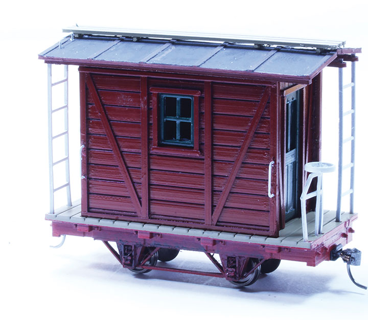 The 14-foot Work Car/Caboose has 25 printed parts plus a short length of wire. The underframe and decking were two separate parts that needed to be properly aligned. The roof inserts into stringers on the top of the body, and can be left removable so the interior can be detailed. The window and door inserts are separate prints so they can be pre-painted a contrasting color to that of the body. I assembled the underframe and house, primed and spray painted them with red flat lacquer. Then I sprayed the deck tan, and primed the roof with a coat of dark gray. The railings, grab irons, brake wheel and ladders were pre-painted white, and then painted, before adding them to the model. Holes for the grab irons were easily opened with a bit and pin vice. The only addition made to this car was the clear glazing over the windows.