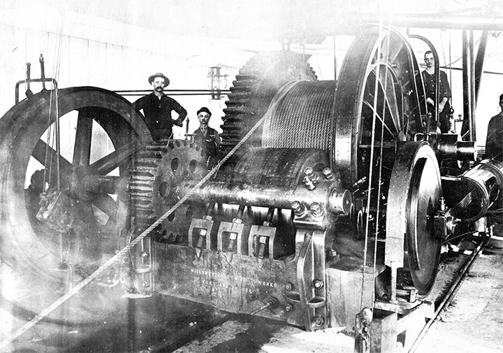 In early 1903, they installed a new lowering machine, built by the Willamette Iron and Steel Works of Portland. It was designed to lower three loaded cars down the incline at once, where the old machine could lower just two cars. The Willamette Iron and Steel ad in the February 1903 edition of the Columbia River and Oregon Timberman Magazine claimed the new machine as the “Largest Logging Engine on Earth.” The total elapsed time for the three loads to make the round trip, including the dumping of the logs, was just twenty minutes.